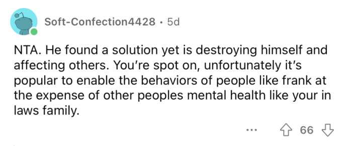 Reddit/Correct_Win_4491The Redditor says "it's his choice" to behave the way he does.