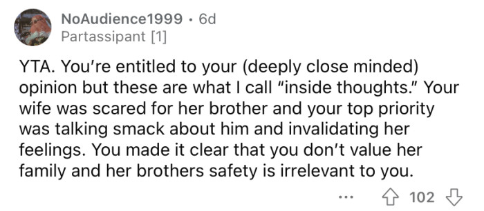 Reddit/Correct_Win_4491He says his wife is "making excuses for her screw-up of a brother."