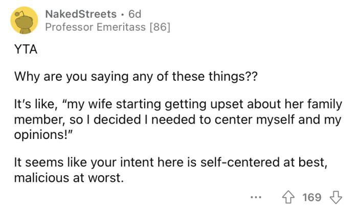 The Redditor remarked that his mother-in-law (MIL) is "weak" and that his wife is "making excuses for her screw-up of a brother." Understandably, the OP's wife did not take kindly to those comments and has refused to speak with him about it since.