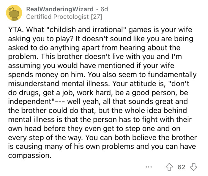 Redditor Gets Ripped Online For Telling His Wife That Her Brother's Mental Illness Is "His Choice"