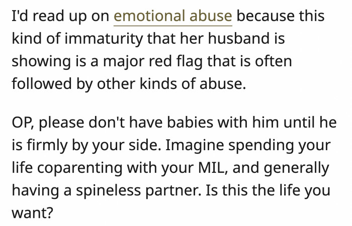 The problem is not just the mother-in-law; the son also needs to reassess his relationship with his mom