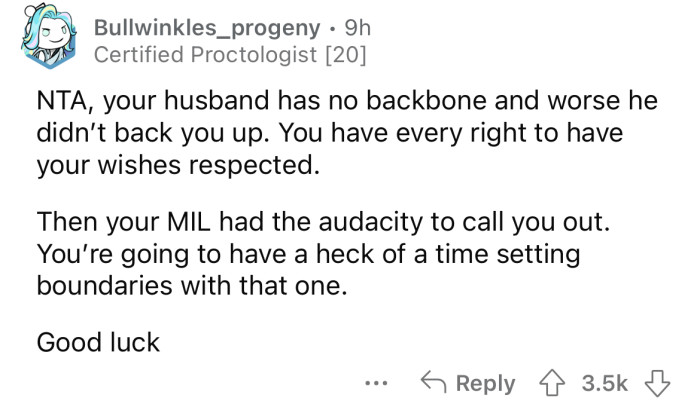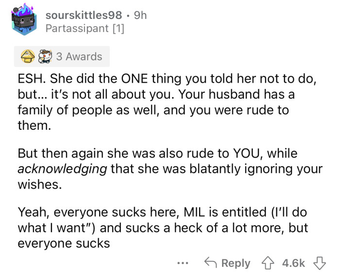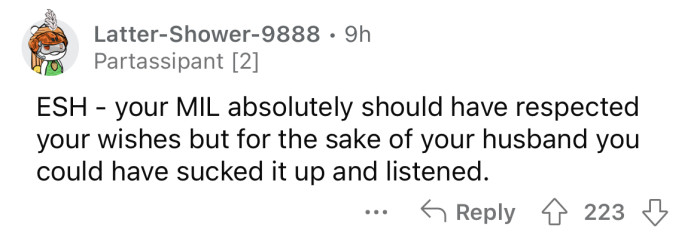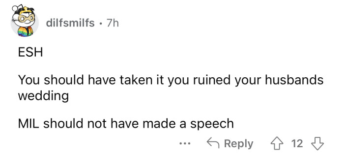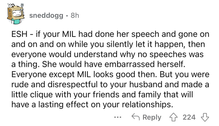 She went on to add that it wasn't unusual for her MIL to make extremely long and mean speeches.