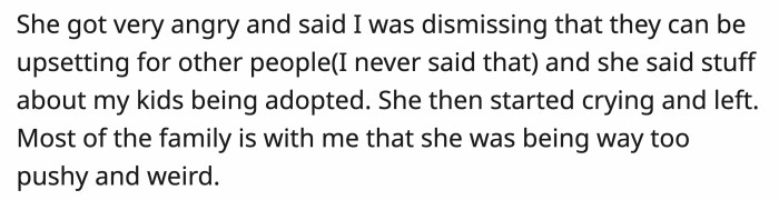 The SIL also made comments about OP's children not being her real children since they weren't biologically related. She then left in tears.