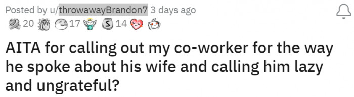 Redditors Applaud Man For Calling Out A Fellow Male Coworker For The Way He Spoke About His Wife