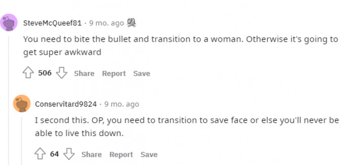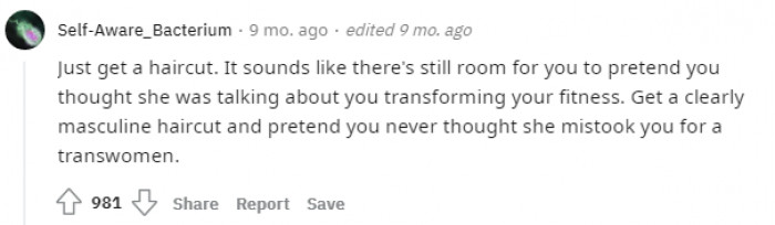 Maybe the Redditor can say that he mistook "transition" to mean "fitness"