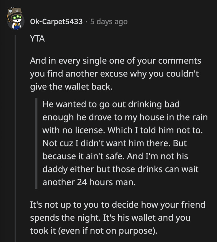 Reddit Schools A Childish Man About Owning Up To Your Mistakes After He Refused To Return His Friend's Wallet When He Accidentally Grabbed It