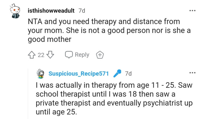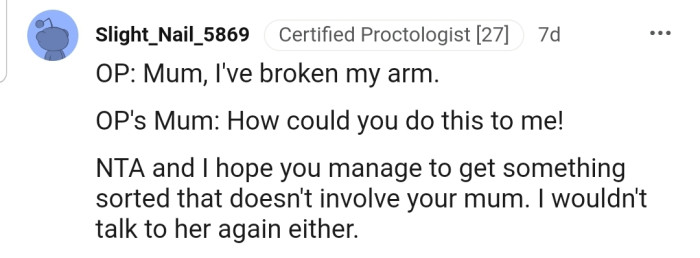 Reddit.comOP feels terrible because they believe they have been nothing but helpful to their mom in the past.