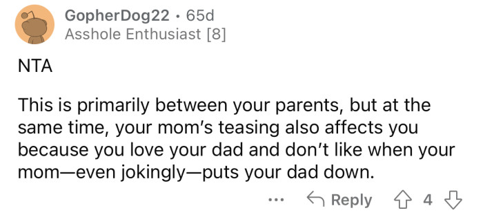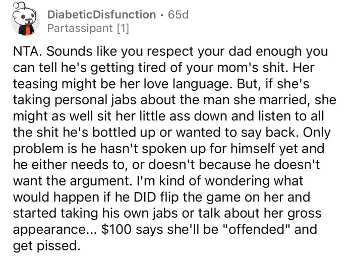 Redditor Tells Her Mom She's "Cruel" For Making Fun Of Her Dad And Putting Him Down