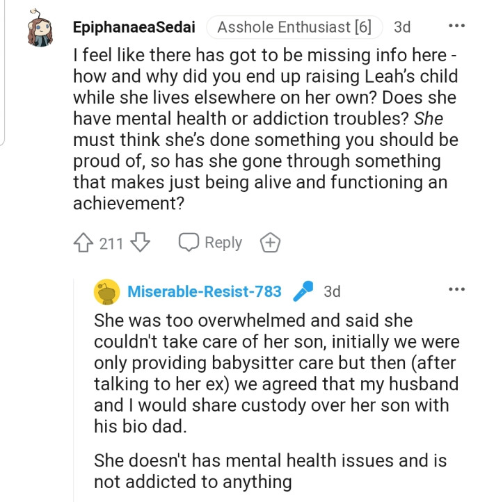 Leah heard her parents say that they are proud of her Kevin, something that had never been said to her before. This made her confront OP, who then responded by telling her that she had not yet done anything for them to be proud of. Now, Leah feels that her parents are painting her as a failure.