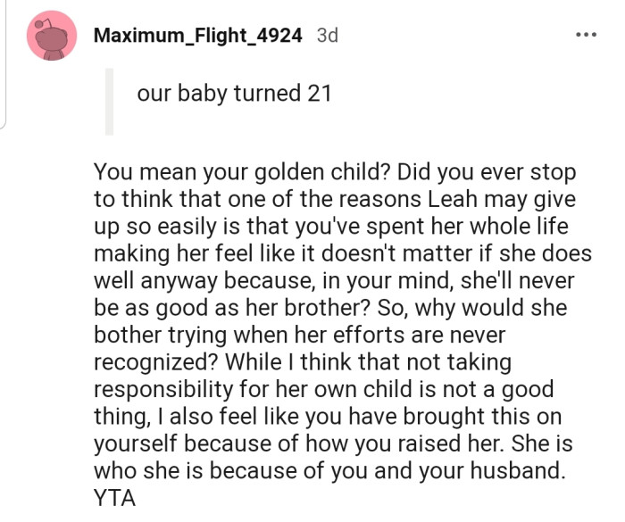 They may even begin to compare their children. We found a story on the AITA subreddit that paints a similar picture.