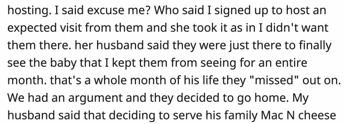 First-time Mom Who Just Gave Birth Accused Of Being Disrespectful After Serving Her Husband's Family Mac 'N Cheese When They Visited Unannounced
