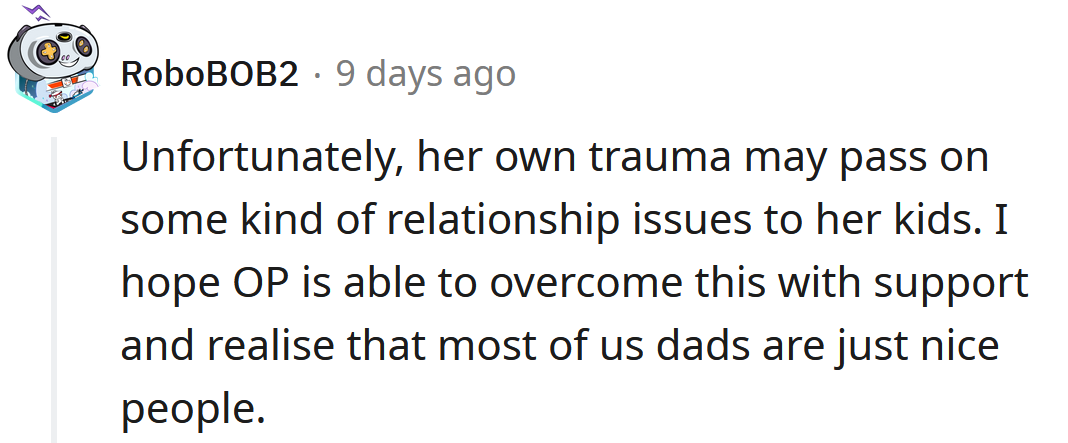 "Her own trauma may pass on some kind of relationship issues to her kids."