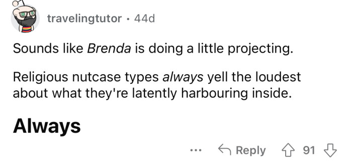 "Religious nutcase types always yell the loudest."