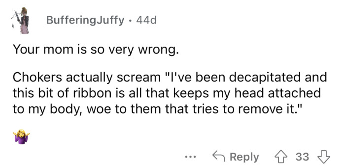 Redditor's Mom Throws Out Her Choker Collection Because "Wearing A Choker Is Just Screaming That You Are A Whore"