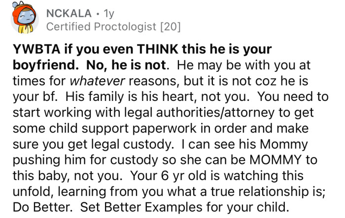 Not to mention that the OP was carrying the baby but wasn't allowed to be there. When she questioned her boyfriend, he simply told her it was "out of his control."