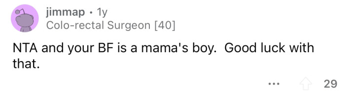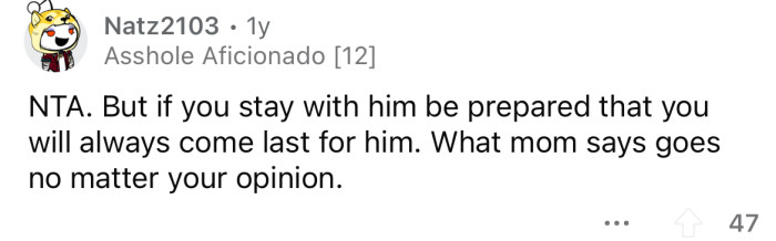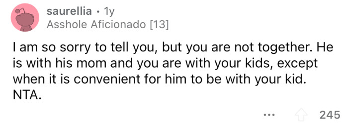 The OP says her boyfriend is always ditching her to spend time with his mom.