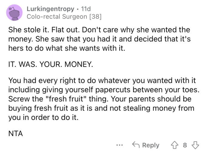 After all, OP was entitled to that money, and she could have put it towards something she really needed or wanted. Keep scrolling to see how people reacted.