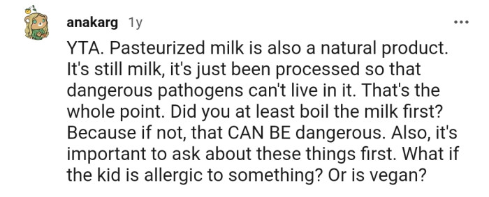 Later, OP got a call from the boy's mom who slammed her for giving him raw milk