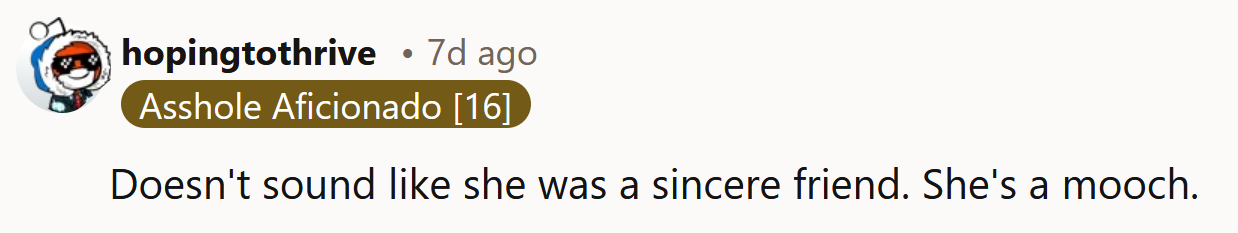 What are your thoughts on this situation? Do you think the OP was overreacting about the money, or was Avery out of line for mooching off her friend all this time?