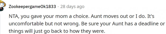 In this case, OP’s ultimatum reflects the culmination of frustrations stemming from perceived burdens placed upon her by her aunt.