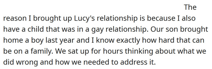 The OP responded indifferently, and the subject was changed. However, later that night, the OP received an email from the same mother. It was essentially a message of support and advice regarding Lucy's sexuality.