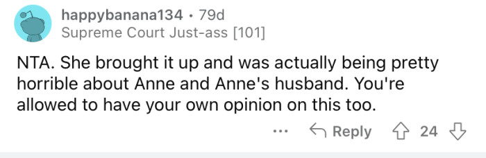 What's your take on this situation? Do you think the OP should have kept her opinion to herself on this occasion, or was Laura overreacting?