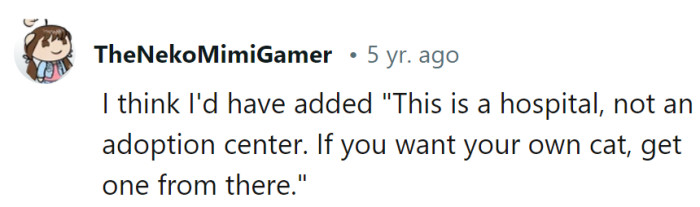 Remaining composed despite the escalating tension, the student explained the purpose of therapy cats, emphasizing their role in providing temporary solace rather than becoming permanent pets. Hospital staff intervened, supporting the student and reminding the entitled mother of the cats' purpose.