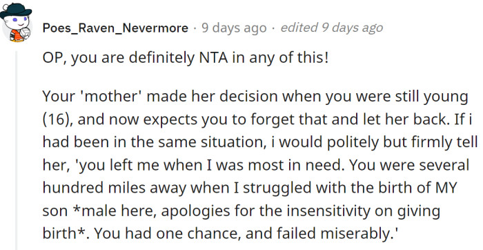 redditThe OP explained their mother is a single parent but left them at 16 to fend for themselves: