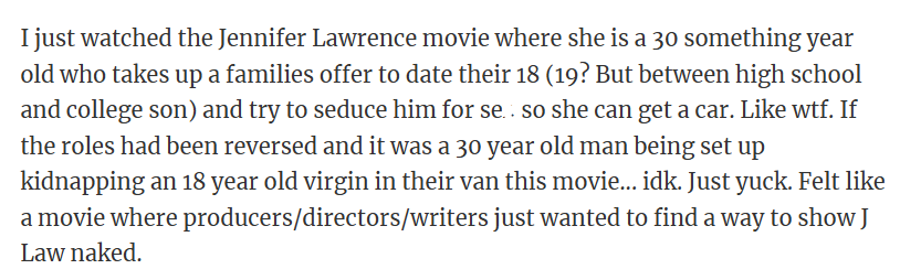 "Felt like a forced excuse to showcase J Law naked. "