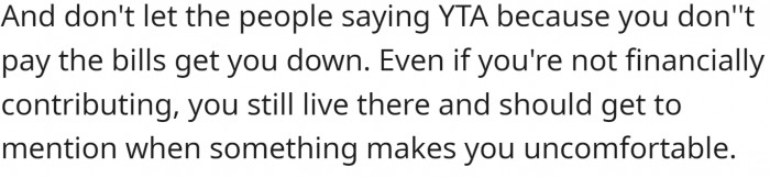 "Even if you're not financially contributing, you still live there and should be able to mention when something makes you uncomfortable."