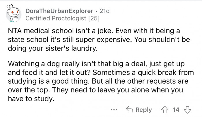 Reddit: r/AmItheA**holeOP's parents expect them to constantly watch over their family dog and siblings.