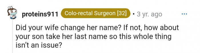"How about your son take her last name so this whole thing isn’t an issue?"