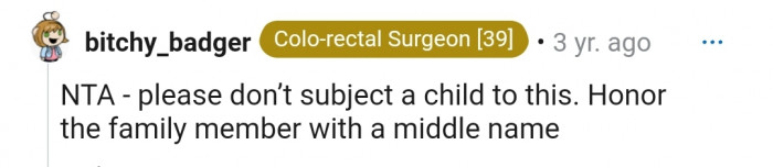 ...this Redditor continued by saying that the name could ruin the child's life