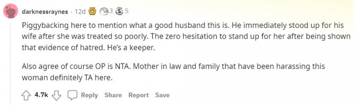 Some of the comments in that message were nothing short of vicious! By being so disrespectful to her daughter-in-law, the mother-in-law is also disrespecting her son.