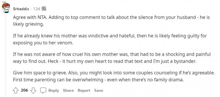 Reddit/throwaway-text2So, when the OP's husband read his mother's cruel words, understandably, he wasn't happy.