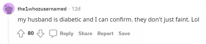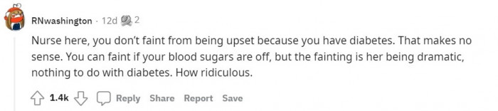 As for the fainting? Well, we're no experts, but it seems that blaming it on diabetes may be a little far-fetched.