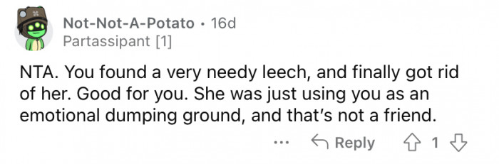 However, recently, the OP says her friend has been demanding much more of her attention. The Redditor explains that she has told her friend several times that she needs time alone to recharge, but her friend did not understand and would always take offense when the OP asked for space.