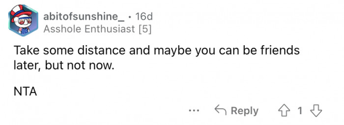 The Reddit user recently shared a story about having to take a break from a friend who refused to respect her boundaries.