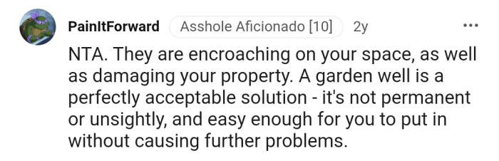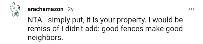 "NTA...So Long as You've Had the Property Surveyed and You Know Where the Boundary Is Located"