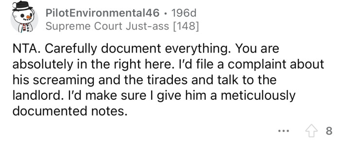 Reddit/Mundane_Morning9454One of them threatened to have the OP's dogs put down for barking, even though the other neighbors said they rarely hear them.