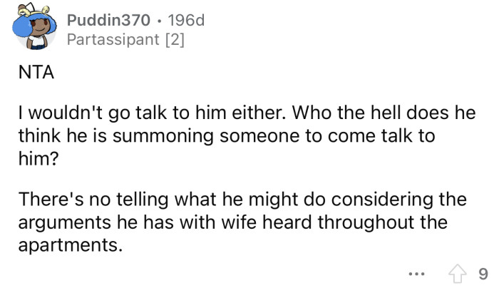 The screaming neighbor demanded the OP go and speak with him, but she refused.