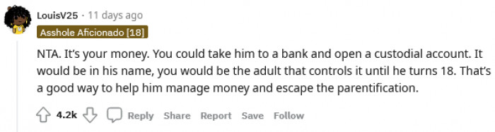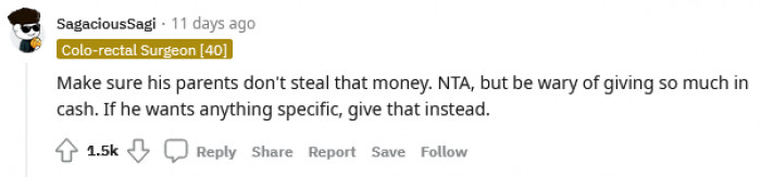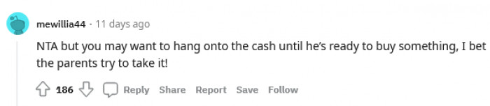 The Reddit user explained that he does well financially, so it was not a lot of money for him, and he was just looking for an excuse to give his nephew some money. But the boy's parents weren't impressed.