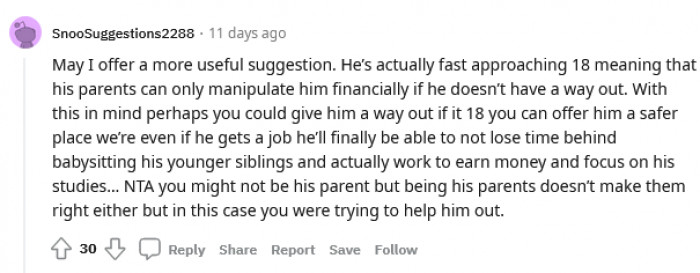 Reddit/Dangerous-Work6020Our OP felt sorry for the boy because he had been wanting to make some money of his own, but his parents wouldn't allow it.