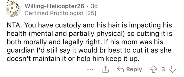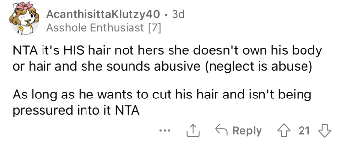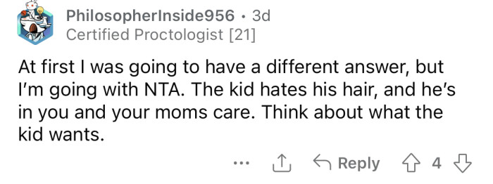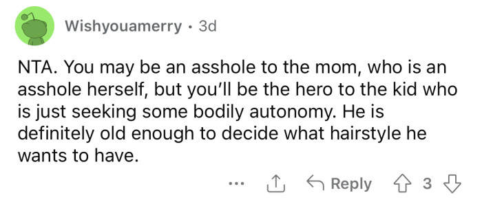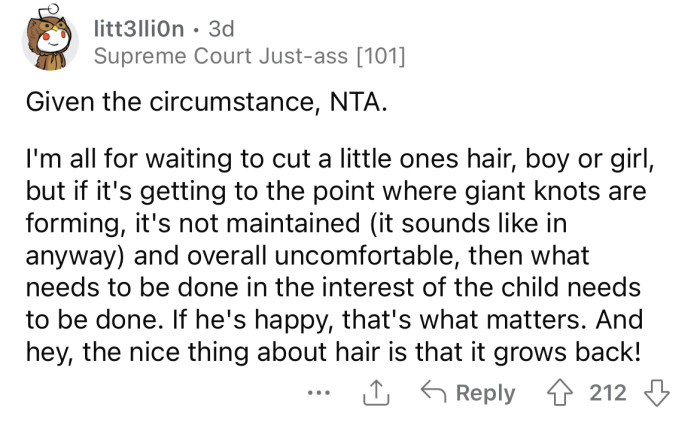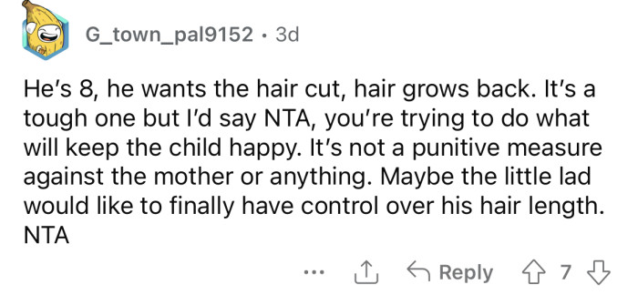 This situation underscores the challenges of navigating parental authority in the context of a child's desire for self-expression. The decision to cut the nephew's hair without permission reflects a common struggle between individuality and parental control.