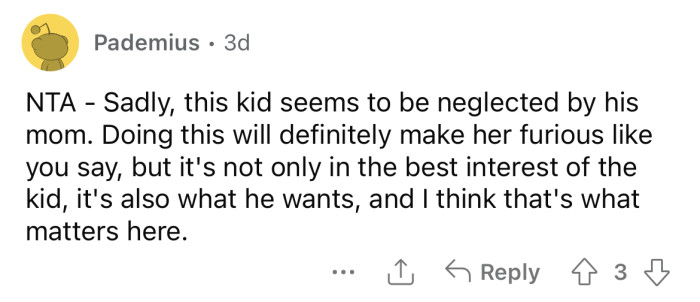 "This kid seems to be neglected by his mom."