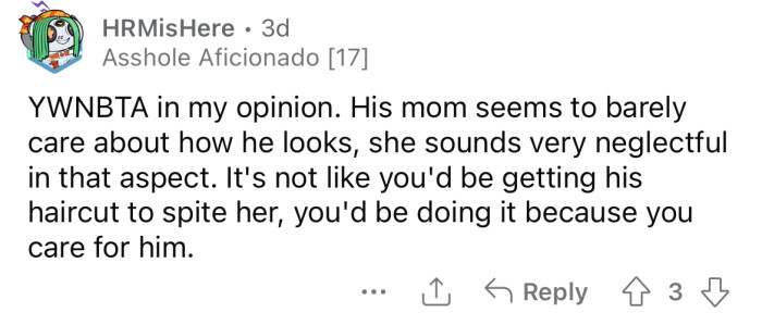 The OP asked if she'll be an a**hole for getting her nephew's hair cut without his mother's permission.