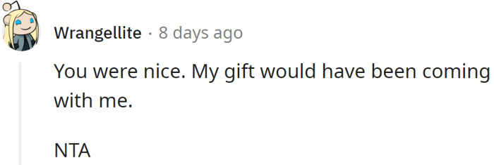 During Eric's recent birthday party, OP gave him a big car toy, which Eric seemed to love more than the other gifts he received. But later in the party, Eric made statements ranking the gifts he received, saying that some were better than others.