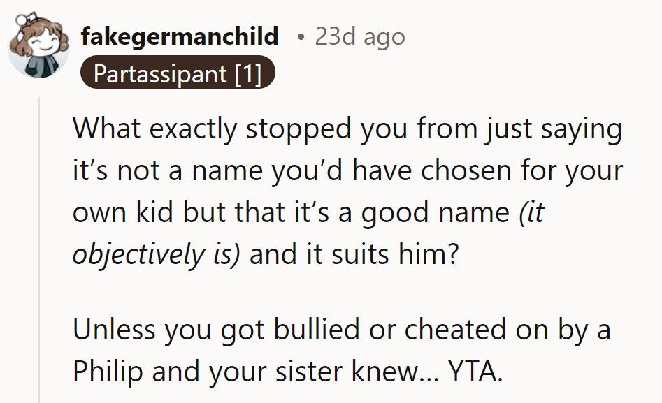 OP's sister named her newborn Philip, a choice that OP dislikes.