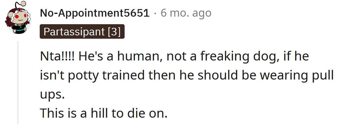 In this case, the request for a child to be potty trained before entering shared spaces reflects a common desire for boundaries that protect personal space and belongings.