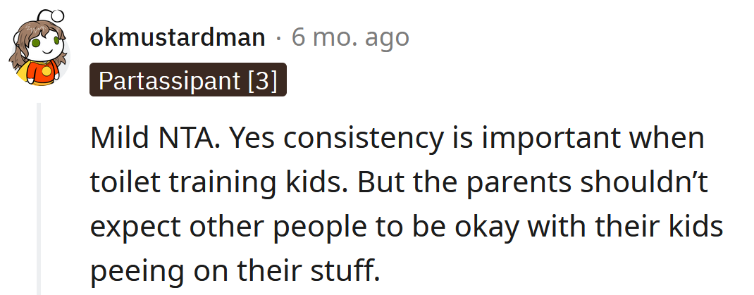 "Parents shouldn't expect other people to be okay with their kids peeing on their stuff."